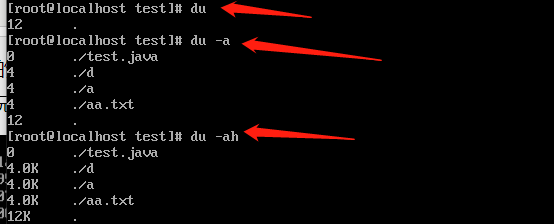du -a : 查看当前文件夹下每个文件(夹)的空间大小