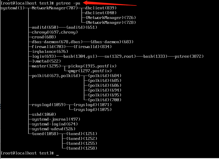 pstree -pu : 以树形结构显示父(子)进程的相关信息