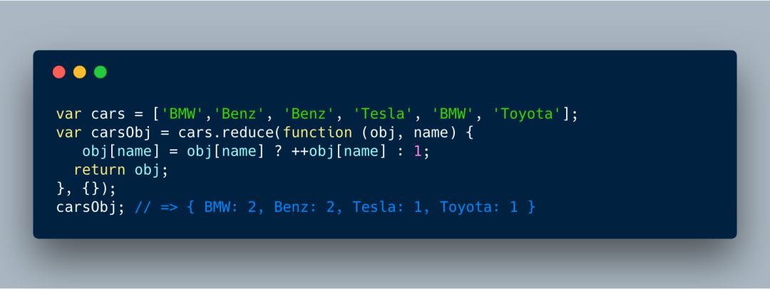 有时你需要统计数组中重复的数据,或将数组转换为对象,你就可以使用reduce了。