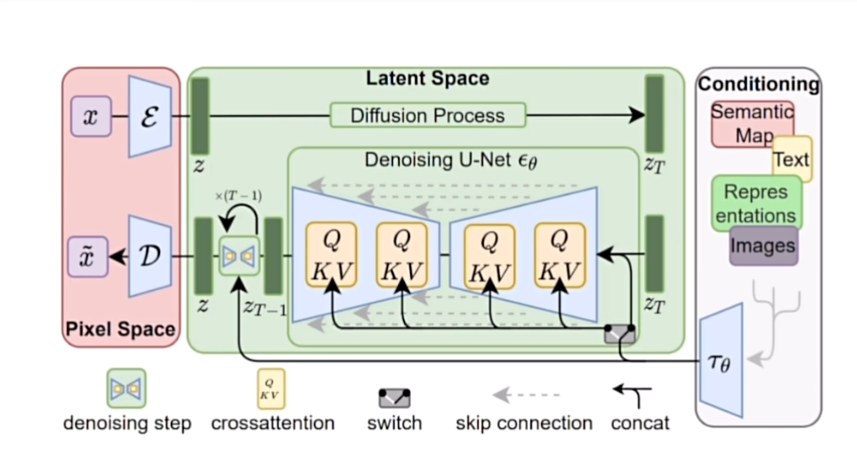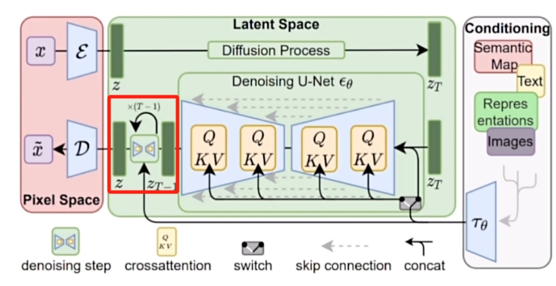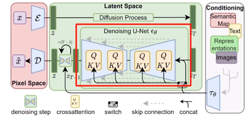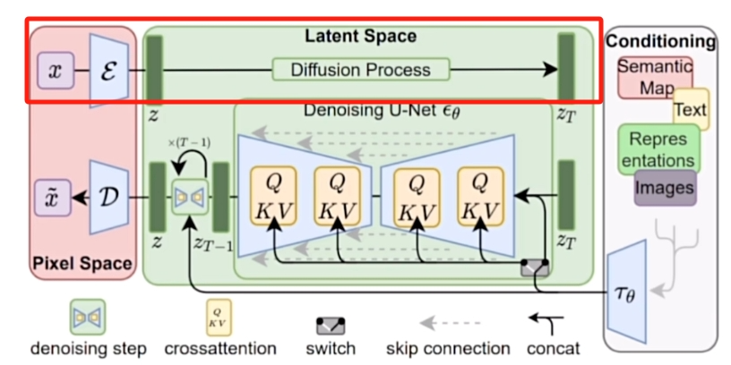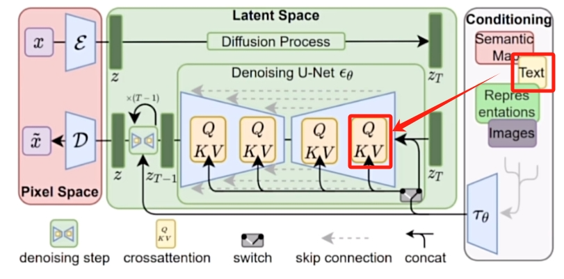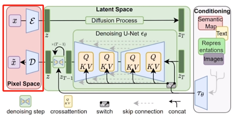 这张图上来就给人看晕了,这个结构其实是Latent Diffusion(Stable Diffusion的前身)所提出来的结构。
