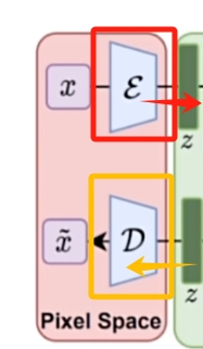 在像素空间里有一个E去潜空间然后D回到像素空间,这个就是常说的VAE
