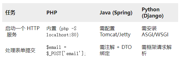 PHP 的成功源于它的极低学习门槛和快速开发能力: