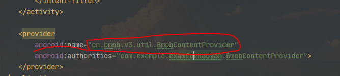 Class referenced in the manifest, cn.bmob.v3.util.BmobContentProvider, was not found in the project or the libraries