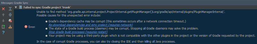 The state of a Gradle build process (daemon) may be corrupt. Stopping all Gradle daemons may solve this problem.