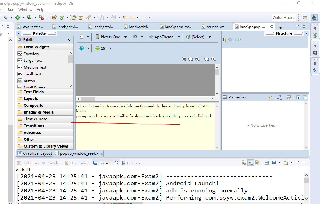 发现没这个错误了,但是当我切换到布局界面的时候,又出现了这个问题,而且界面看不见: