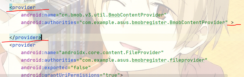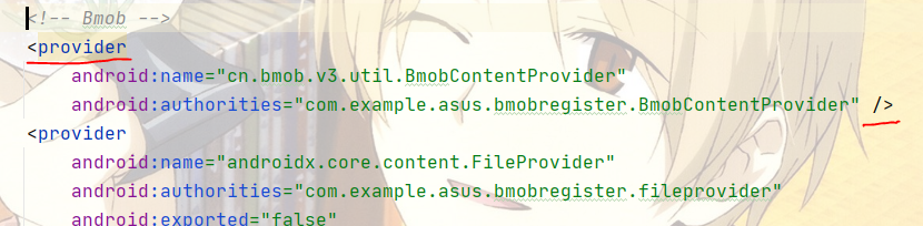 结果是因为在AndroidManifest.xml中添加Bmob Content Provider时android:authorities属性中的结尾Provider没有写好。按道理来说也可以这么写的呀
