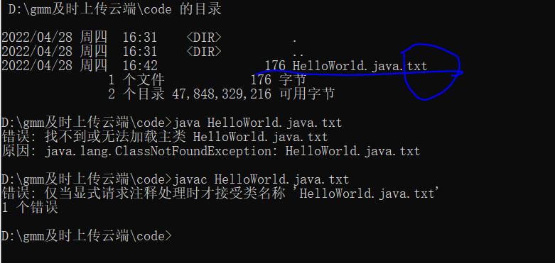 eg:javac HelloWorld.class是错误的;修改为:java HelloWorld.java(因为jdk 11开始支持Java直接运行源代码文件,省去javac编译步骤,但底层会先生成临时的class文件,然后运行)