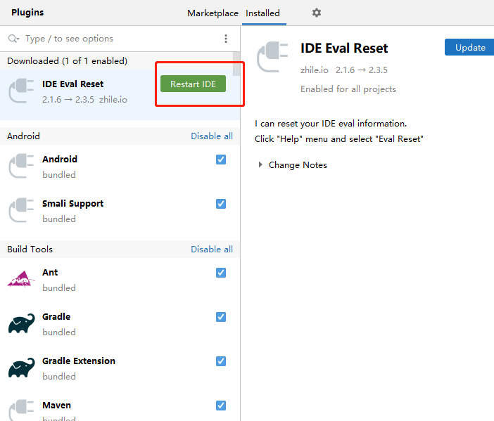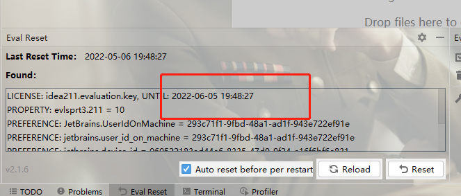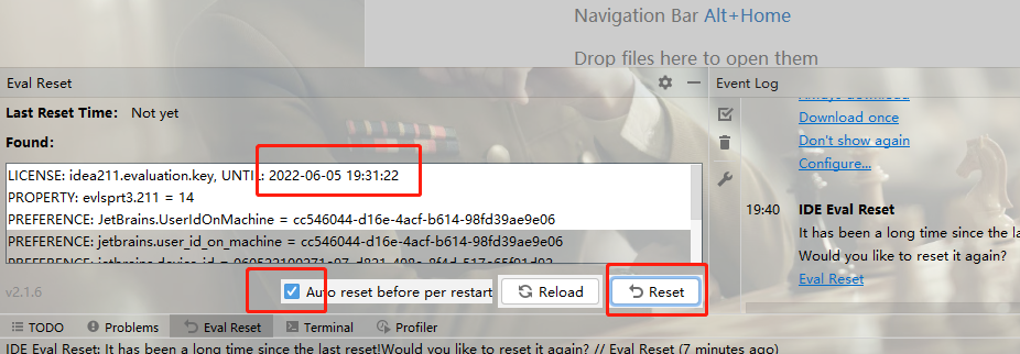 菜单栏help-最下方eval reset选项,选择后,出现如下界面