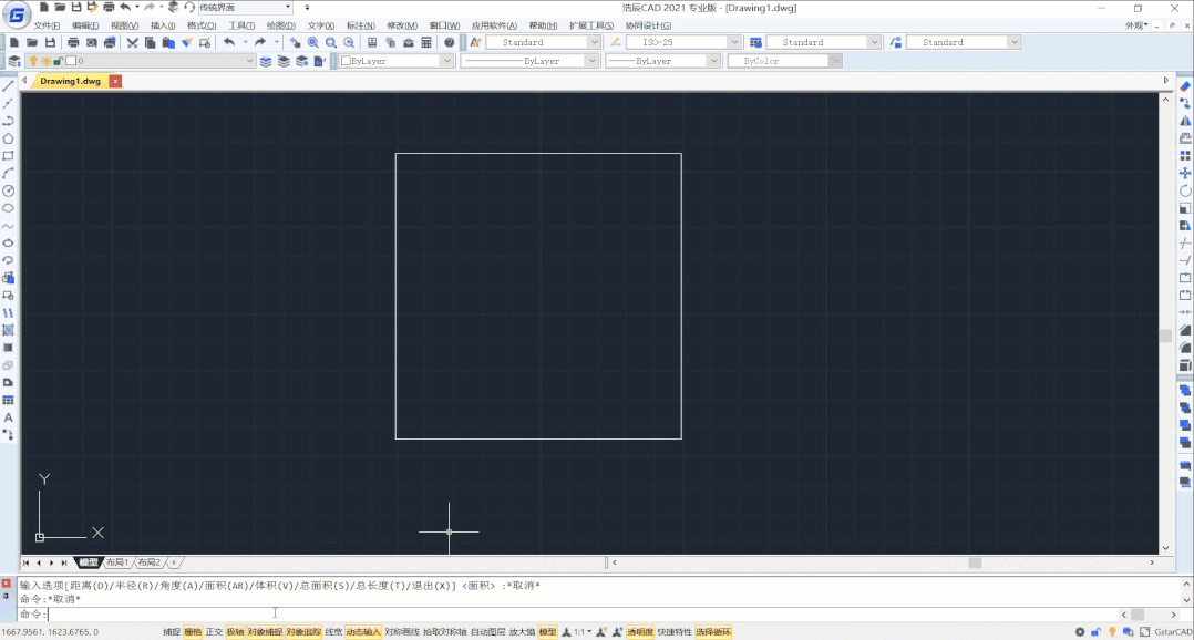根据提示,输入O来选择对象,再选择需要测量的实体,即可在命令行获得测量对象的面积。同时,浩辰CAD软件还会自动计算出相应的周长,如图所示。