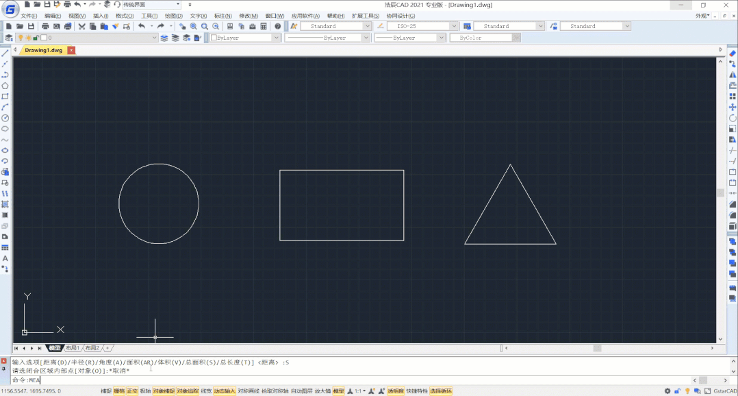 在命令栏输入MEA,启动「查询」命令,并按照提示栏相关选项,输入AR。