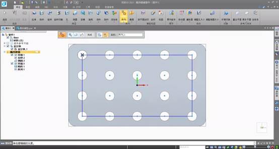 关闭浩辰3D建模软件的草图,完成矩形阵列。