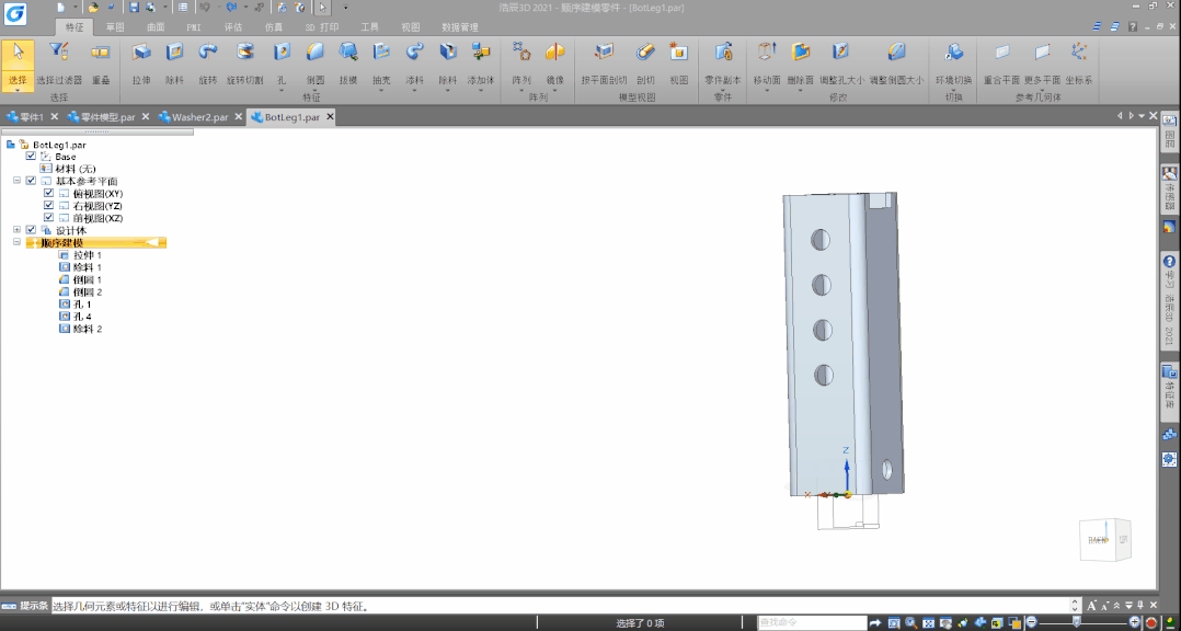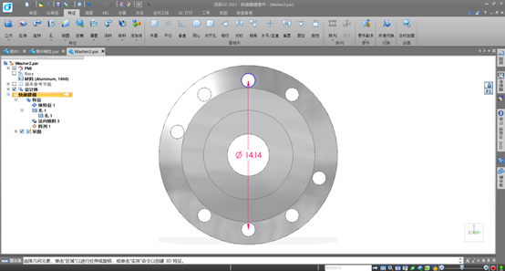 关闭浩辰3D软件的草图,完成圆形阵列。