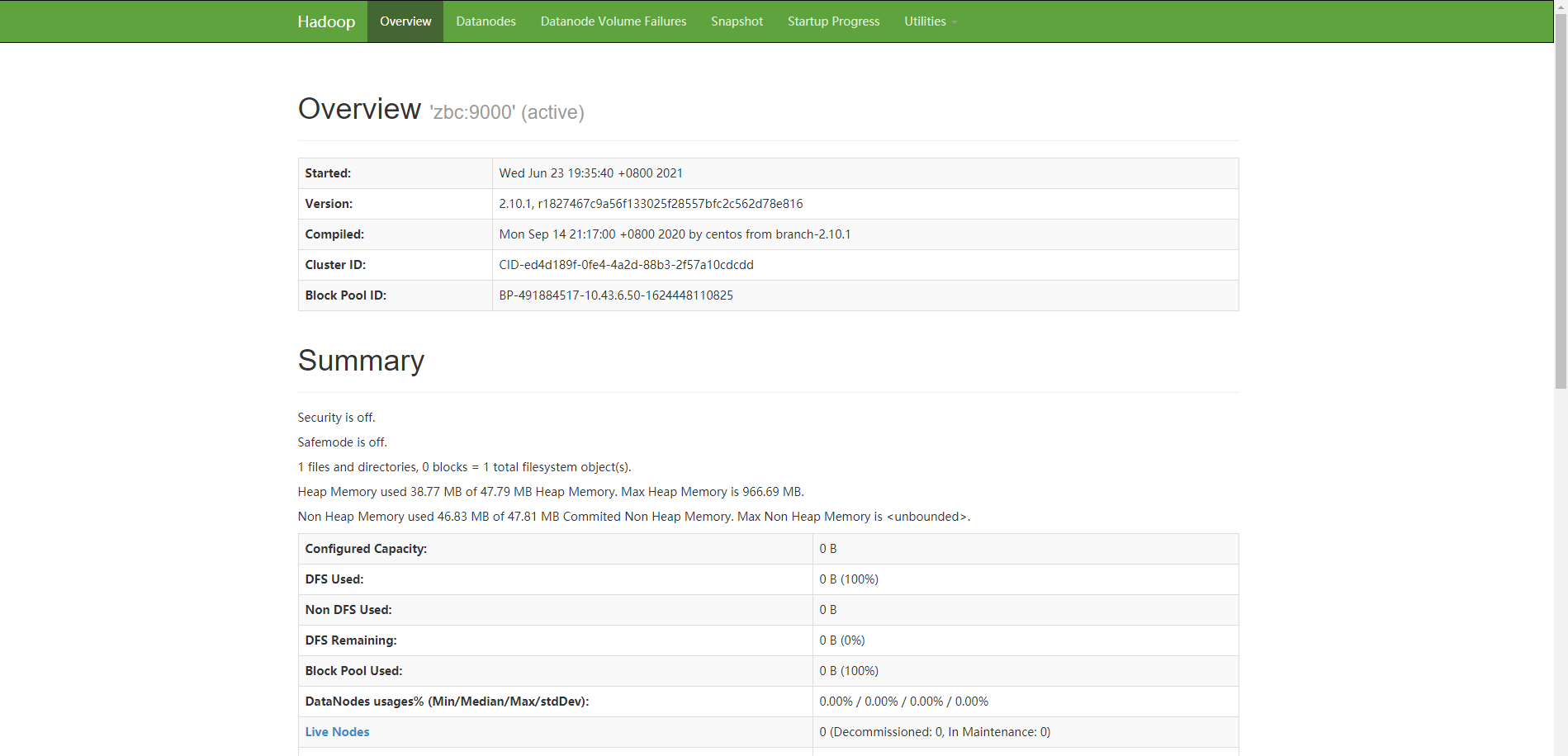 <configuration> <property> <name>dfs.namenode.name.dir</name> <value>/home/hadoopData/dfs/name</value> </property> <property> <name>dfs.datanode.data.dir</name> <value>/home/hadoopData/dfs/data</value> </property> <property> <name>dfs.replication</name>//副本个数,默认配置是 3,应小于 datanode 机器数量,我只配置了一个从机,所以改成了1 <value>1</value> </property> <property> <name>dfs.webhdfs.enabled</name> <value>true</value> </property> <property> <name>dfs.permissions.superusergroup</name> <value>staff</value> </property> <property> <name>dfs.permissions.enabled</name> <value>false</value> </property> </configuration>