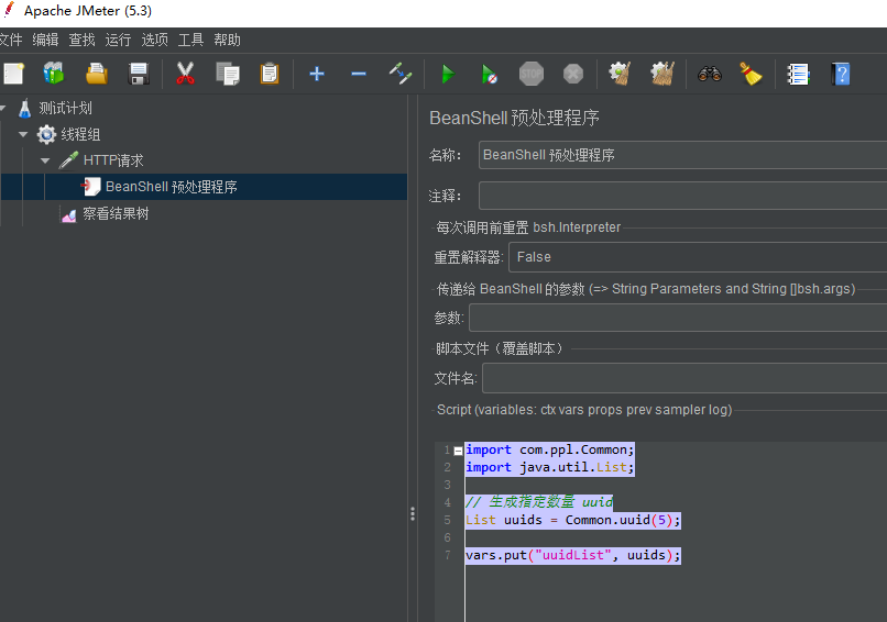 vars.put("uuidList", uuids); 表示将 uuids 变量存储为线程内共享,并命名为:uuidList