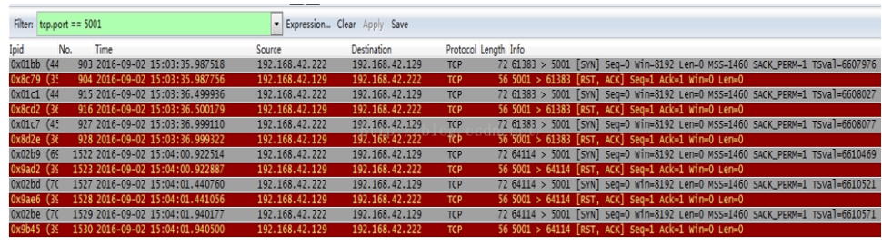 这种状况是比较常见的,这个port没有被监听,但是有client去connect,这个时候TCP就会使用复位