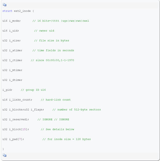 三重间接块:iblock[14]是三重间接块。对于"小型"EXT2文件系统,可以忽略它。