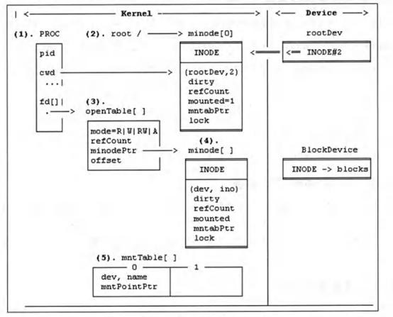 MINODE minode [NMINODE]; // in memory INODEs