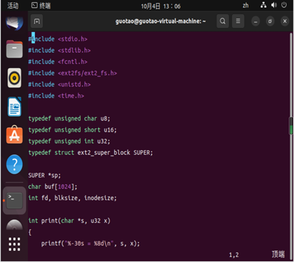 实践——使用ext2文件系统相关内容读取超级块,并输出。