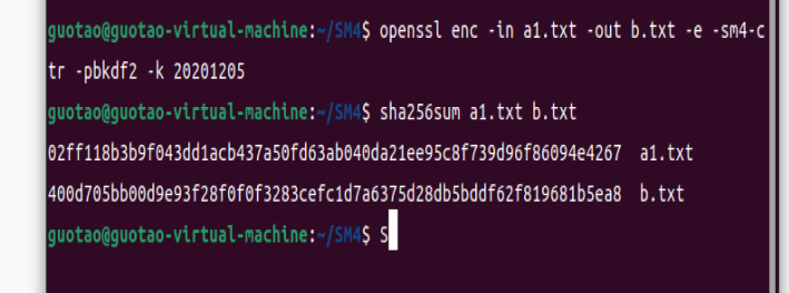 $ openssl enc -in a1.txt -out b.txt -e -sm4-ctr -pbkdf2 -k 123123