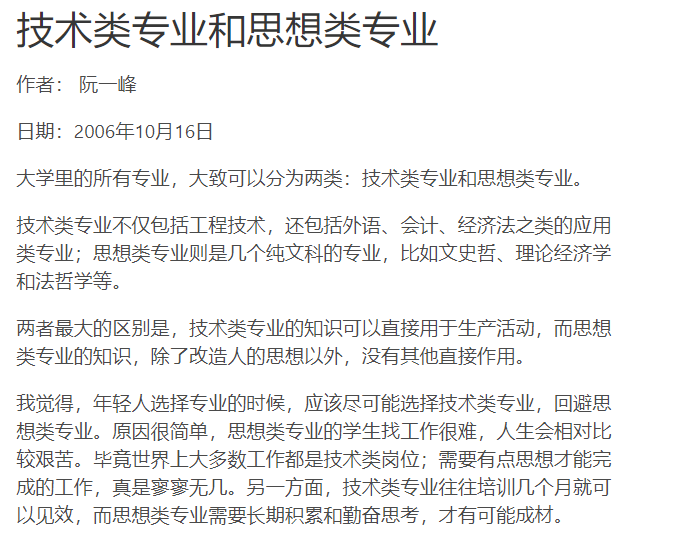 技术类专业和思想类专业