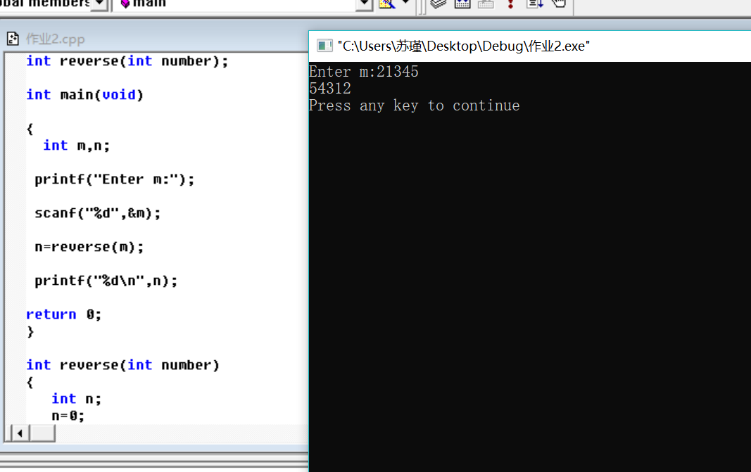 6.使用函数输出一个整数的逆序数:输入一个整数,将它逆序输出。要求定义并调用函数reverse(number),它的功能是返回number的逆序数。例如,reverse(12345)