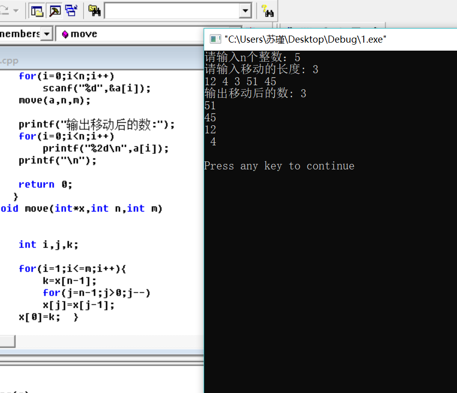3、循环右移:有n个整数,是前面各数顺序向后移m个位置,移出的数再从开头移入。编写