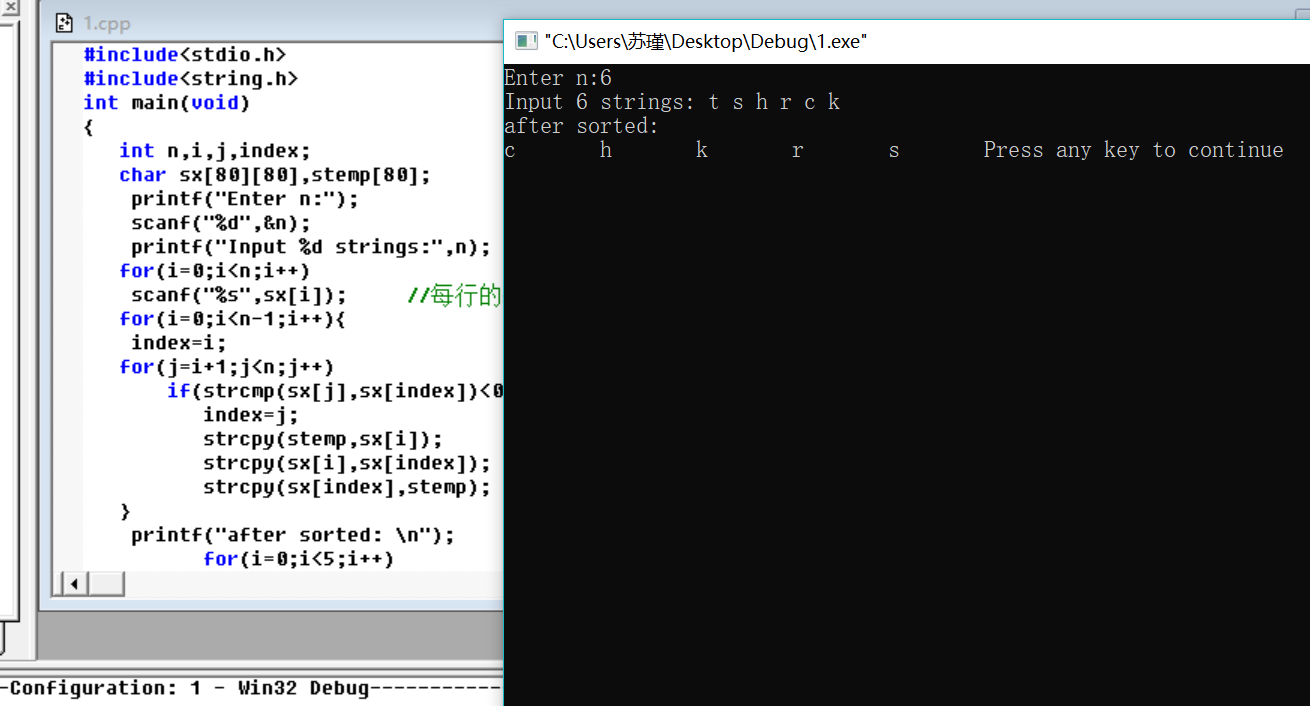 心得:编程序的时候还是遇到很多问题,数组和指针还不是很理解,以后多上机多练习。