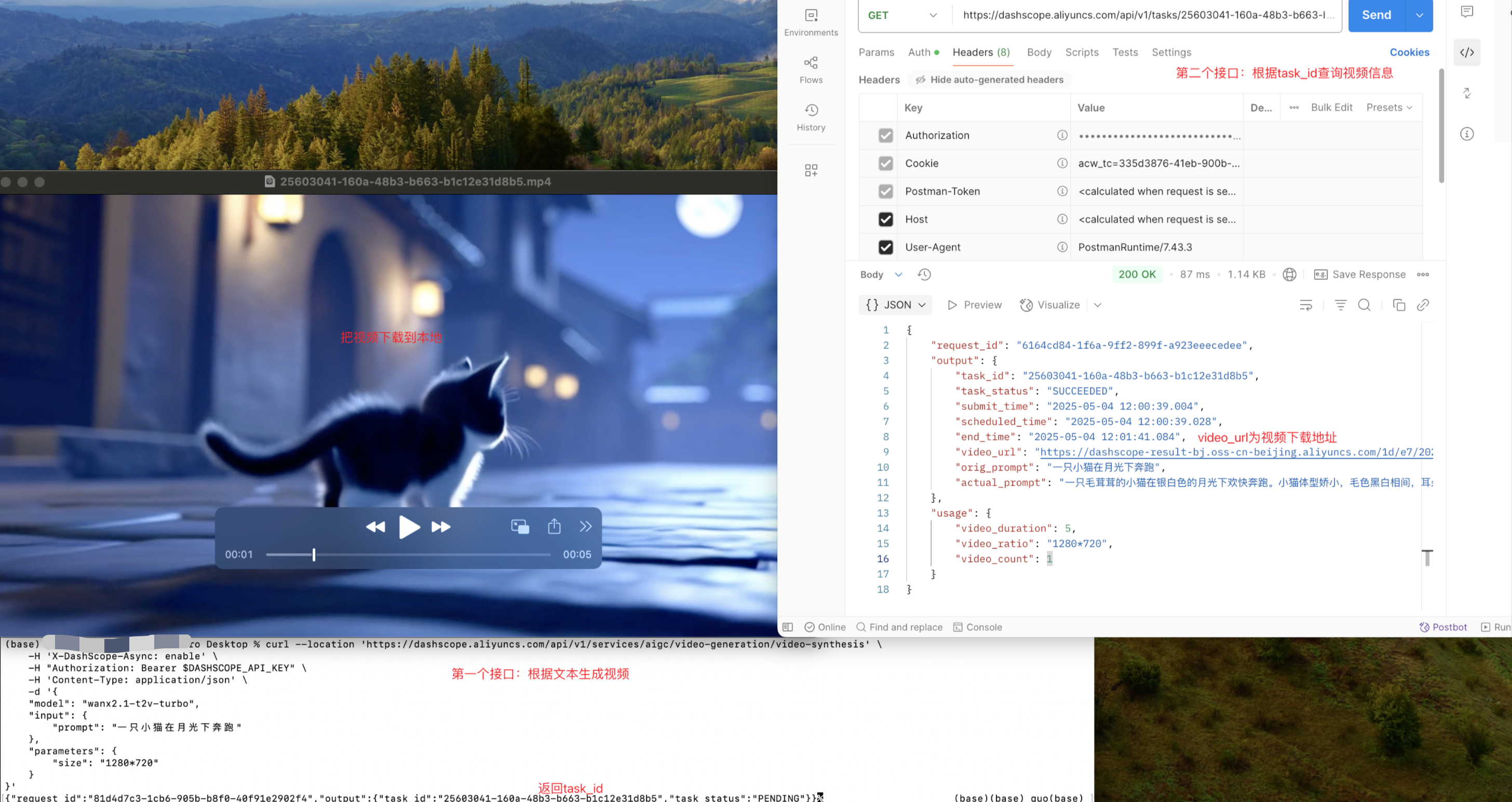 现在,我只要把阿里百炼平台上提供的这两个接口包装下,写套界面外壳,就可以号称自己开发了一款文生视频的软件了(bushi)