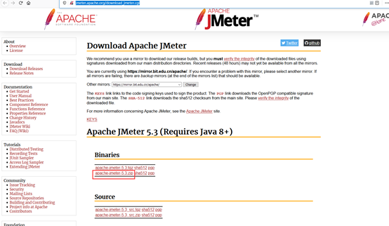 进入http://jmeter.apache.org/download_jmeter.cgi 官网下载windows版本,注意这个版本依赖jdk版本是java8+,就是8版本以上的