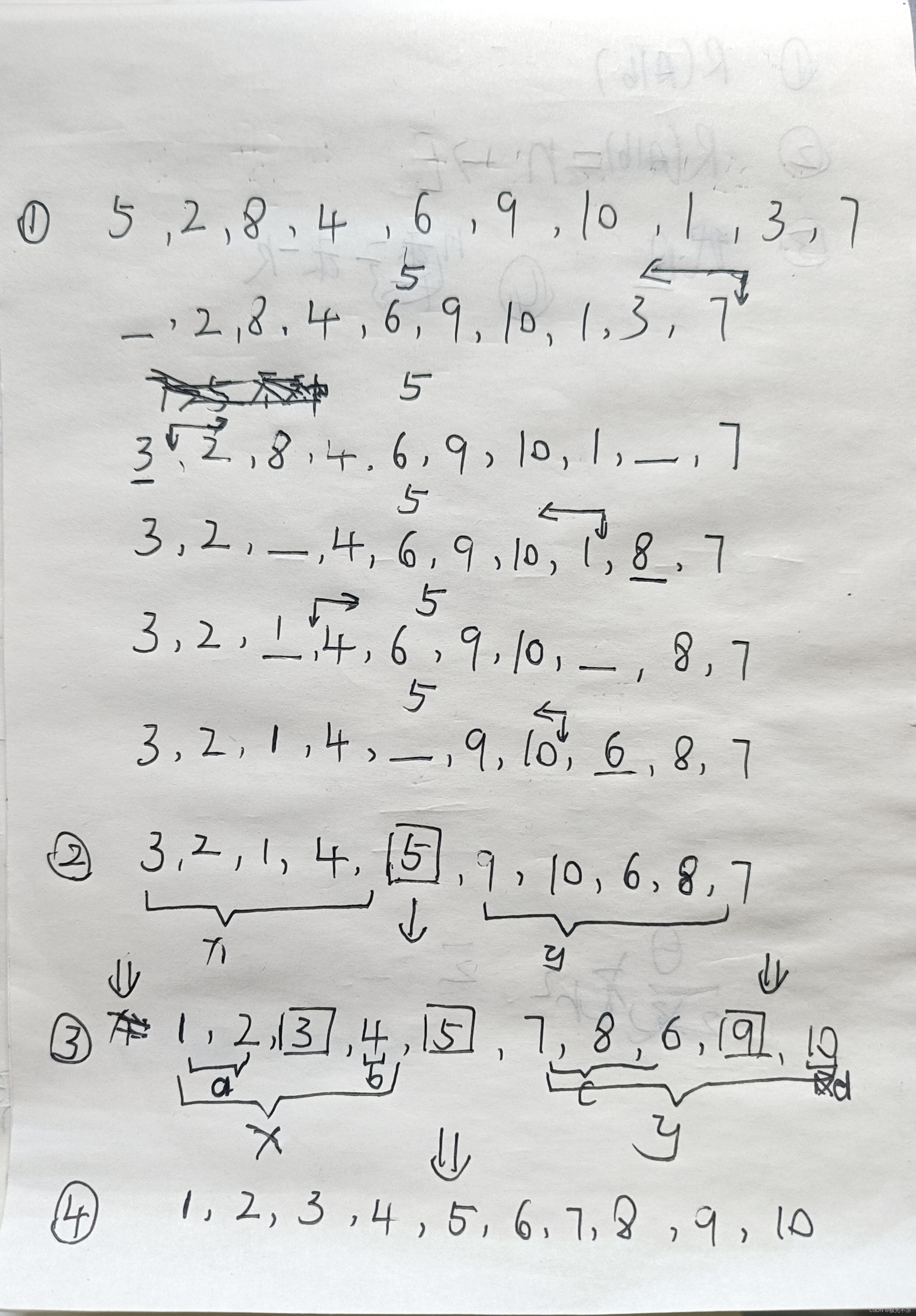 (人)做题:数据 5,2,8,4,6,9,10,1,3,7快速排序