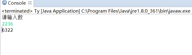 import java.util.Scanner; public class Ty { public static void main(String[] args) { Scanner sc = new Scanner(System.in); System.out.println("请输入数"); int shu = sc.nextInt(); int dao = 0; while(shu != 0){ int yu = shu % 10; shu = shu / 10; dao *= 10; dao += yu; } System.out.println(dao); } }