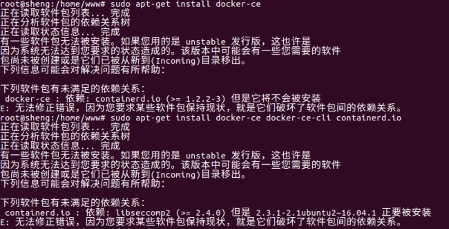 Docker 的旧版本被称为 docker,docker.io 或 docker-engine 。如果已安装,请卸载它们:
