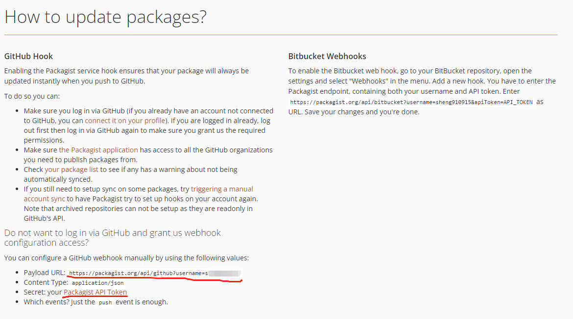 打开地址:https://packagist.org/about 拉到下面,复制payload url。