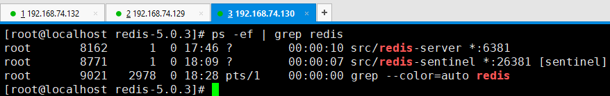 ps -ef | grep redis,可以看到redis及哨兵都正常启动