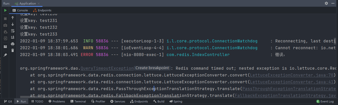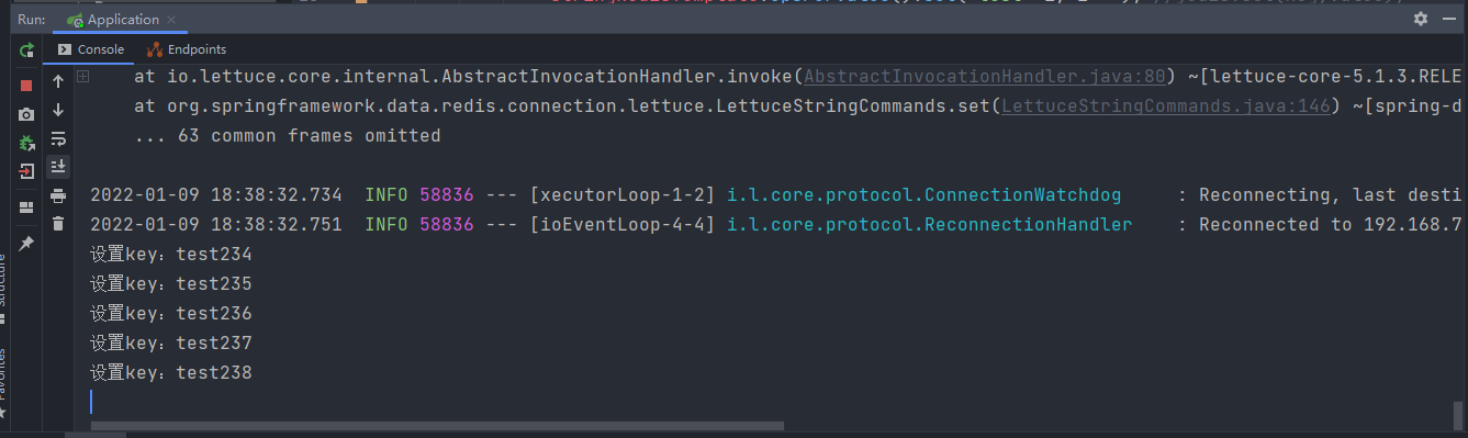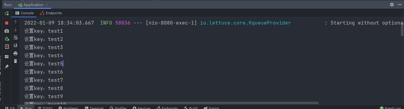 建一个springboot项目,一个controller方法,启动后访问测试接口地址:http://localhost:8080/test_sentinel,程序每隔一秒钟往redis集群写入一个数据