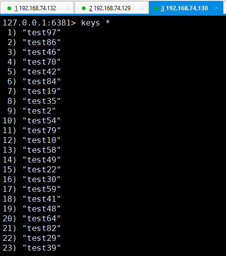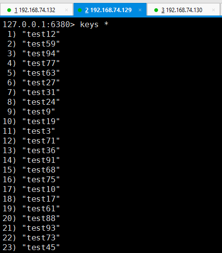 nodes: 192.168.74.132:26379,192.168.74.129:26380,192.168.74.130:26381