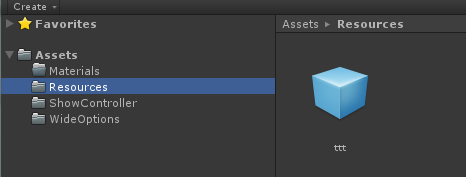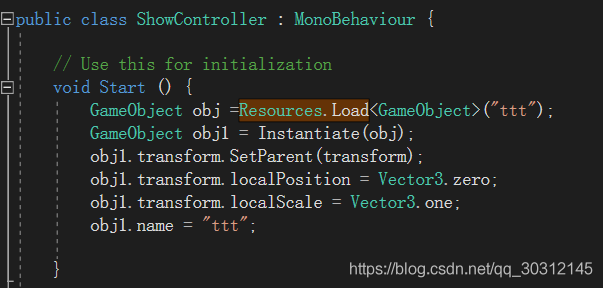2、在挂在的脚本中先加载资源 GameObject obj =Resources.Load<GameObject>("ttt");