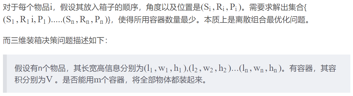 三维装箱问题即研究如何用最少数量的箱子将物品装起来。其描述如下: