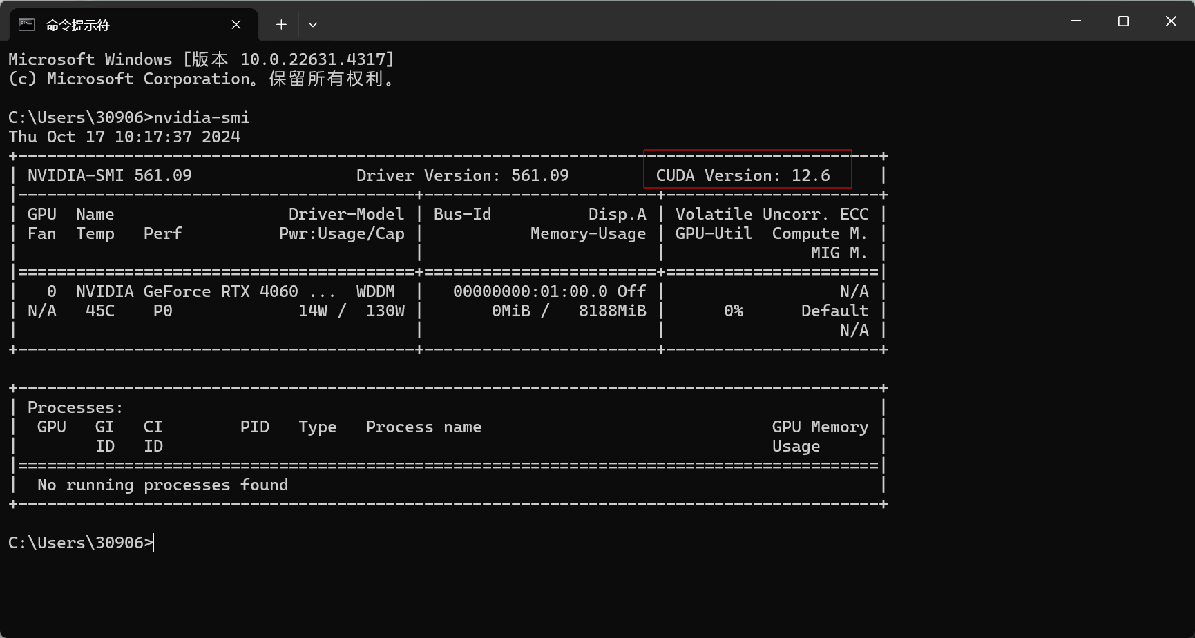 接着输入 nvidia-smi 查看cuda最高版本