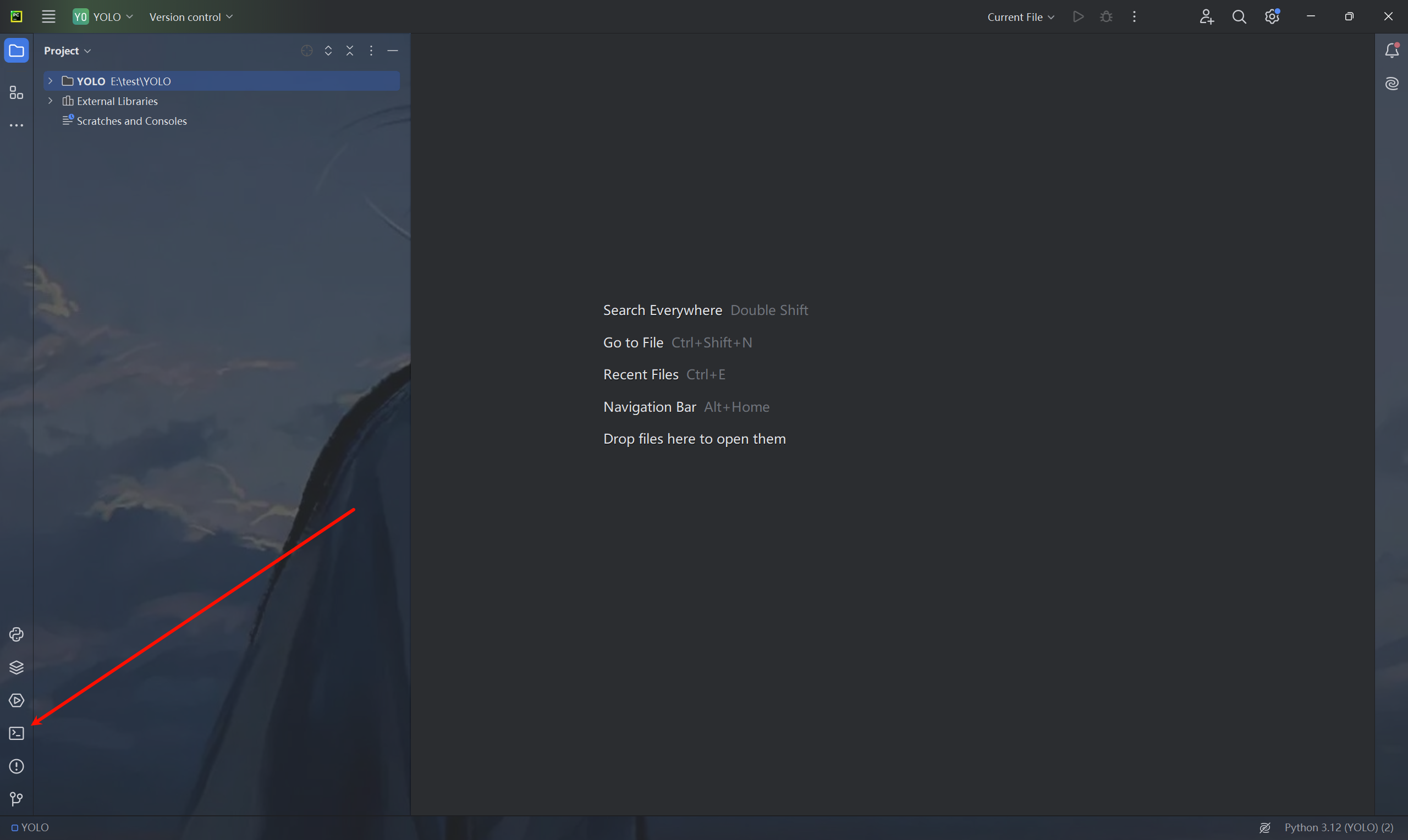 打开pycharm,进入终端