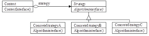 Strategy模式的设计意图是,定义一系列的算法,把它们一个个封装起来,并且使它们可以相互替换。此模式使得算法可以独立于使用它们的客户而变化,其结构图如下图所示。
