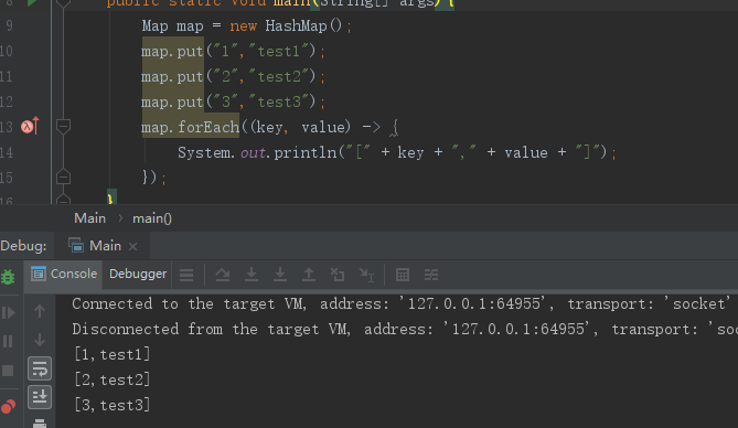 /** * 这是java 1.8 开始提供的方法,目的是遍历Map中的键值对,可以看到该方法内部使用的是内部的entrySet()进行遍历,在遍历过程中将key与value传入BiConsumer调用 * * @param action The action to be performed for each entry * removed during iteration * @since 1.8 */ default void forEach(BiConsumer<? super K, ? super V> action) { Objects.requireNonNull(action); for (Map.Entry<K, V> entry : entrySet()) { K k; V v; try { k = entry.getKey(); v = entry.getValue(); } catch(IllegalStateException ise) { // this usually means the entry is no longer in the map. throw new ConcurrentModificationException(ise); } action.accept(k, v); } }