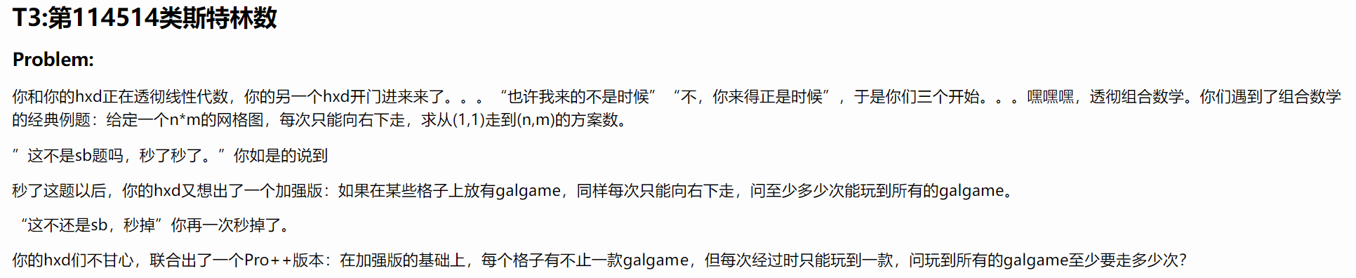 - 不是t的倍数(假设\(t=p_1*p_2\)),那么就是\(n-n/p_1-n/p_2+(n/(p_1p_2))\) 我们可以通过这两步看出容斥关系。 - 暂时不知道是什么原理,应该是可以归纳为某个知识点的。(哭)