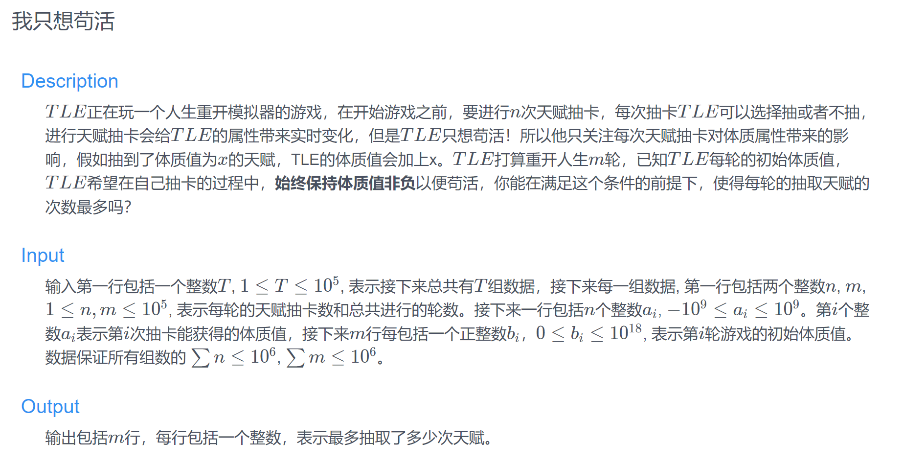 一个正数只会对后面的负数有影响,倒着贪心,然后最后二分。