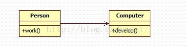 表现在代码上,为依赖的类的某个方法以被依赖的类作为其参数。或者是class A 的某个方法创造了 class B 的实例抑或对class B的静态方法的调用。如果A依赖于B,那意味着B的变化可能要求A也发生变化;