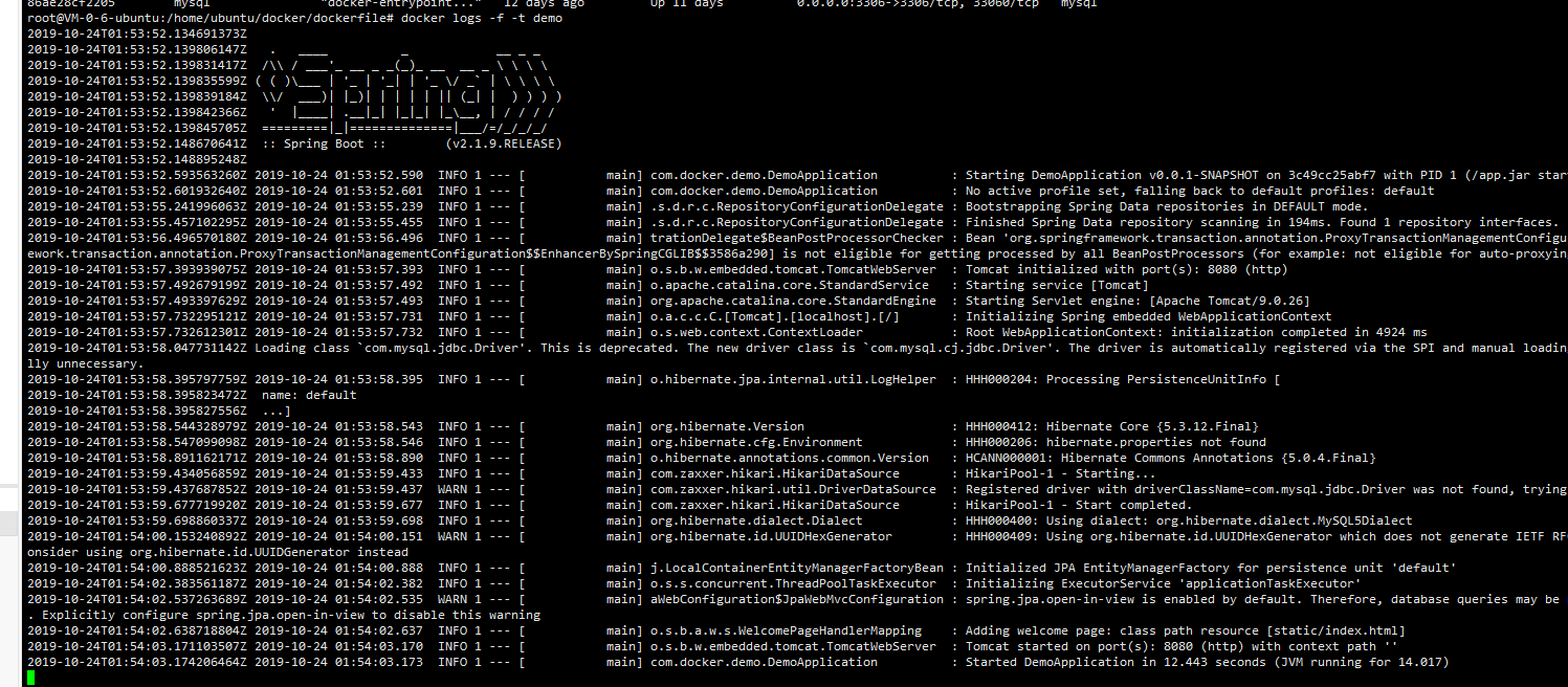#Docker image for springboot file run #基础镜像使用java FROM java:8 #VOLUME 指定临时文件目录为/tmp VOLUME /tmp #将jar包添加到容器中并更名为app.jar 前面为打包的项目包文件名 ADD springboot-demo-0.0.1-SNAPSHOT.jar app.jar #运行jar包 RUN bash -c 'touch /app.jar' ENTRYPOINT ["java","-Djava.security.egd=file:/dev/./urandom","-jar","/app.jar"]