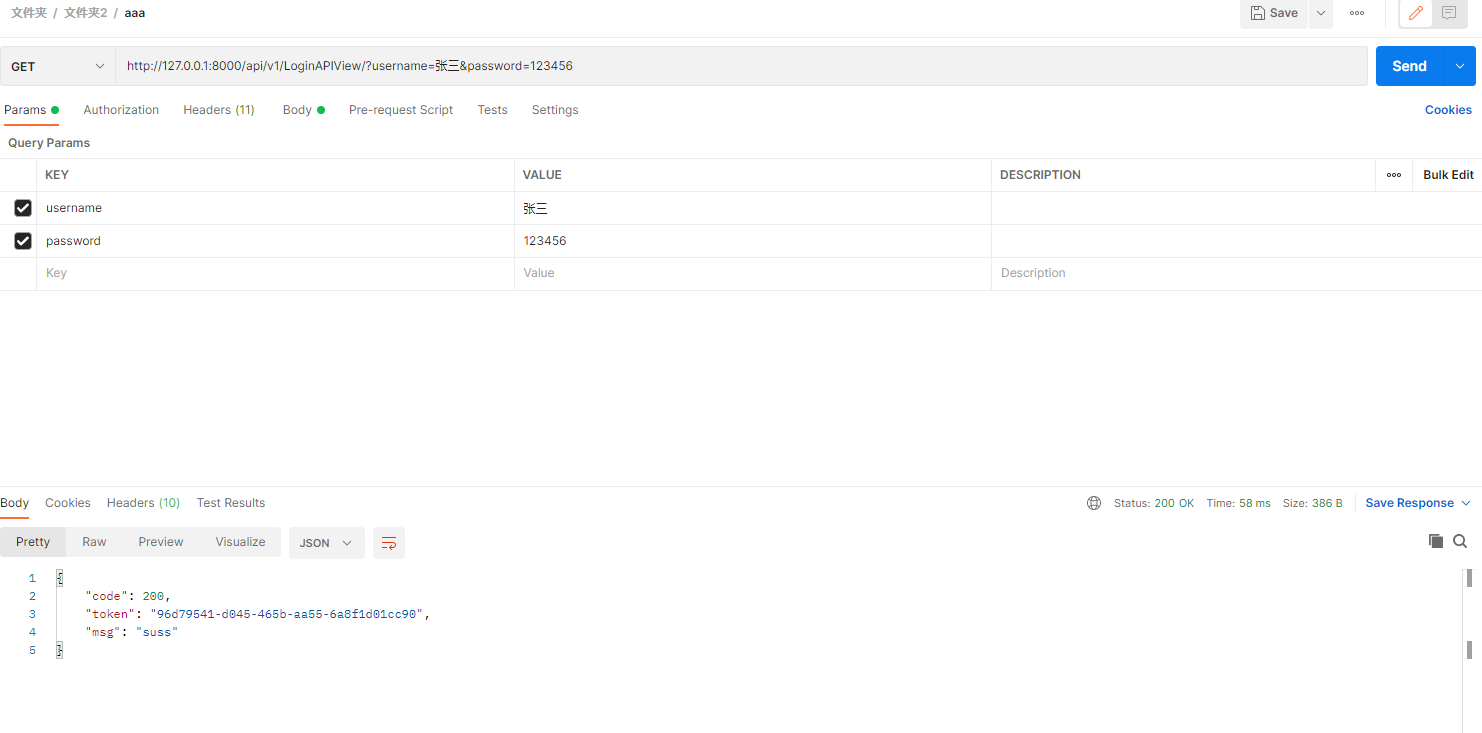 6、在Params中加上token,再次访问,访问成功