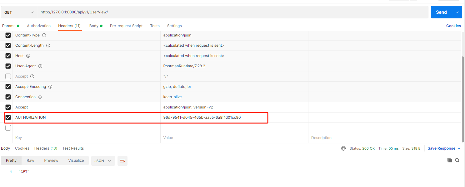 7、把token放到头部信息中,再次访问,接口访问成功
