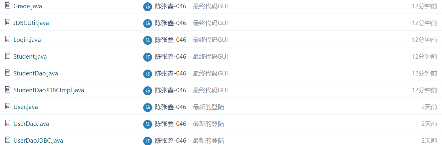 (1)陈张鑫[组长]:1. 注册、登录功能,MVC模式以及GUI界面的优化;2.数据库的创建及其DAO模式的建立。3.使用POI将数据导出到Excel表格中。4.模糊查找。