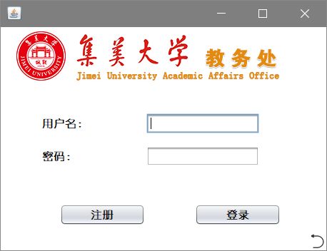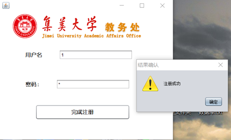 - (2)注册界面:学生或老师进入注册页面输入自己的用户名和密码来注册账户
